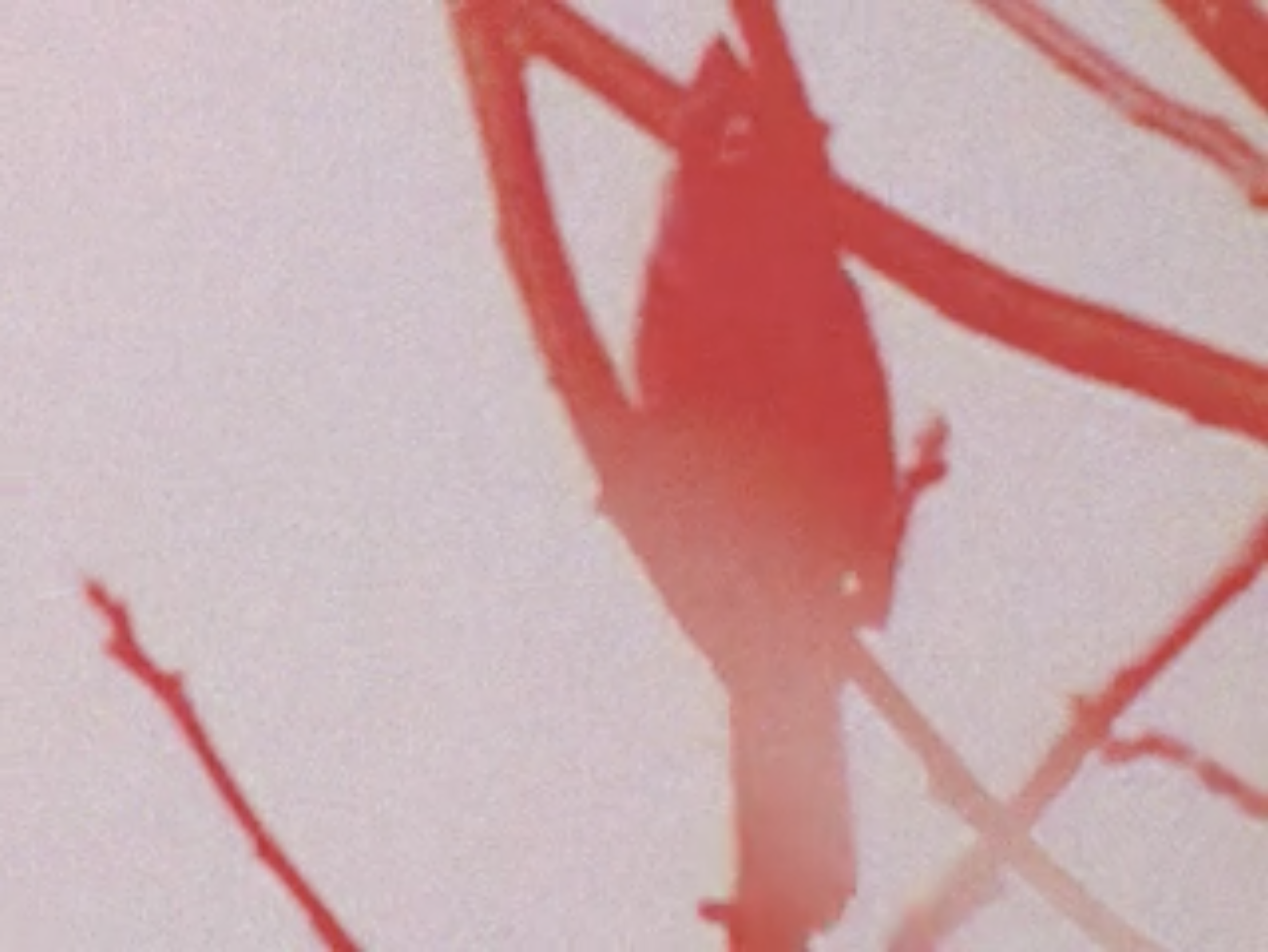 Video installation. Cardinals fight their own reflections. Shows a cardinal, flashing on a CRT TV, pausing for viewers to see their own reflections in the screen for a moment.